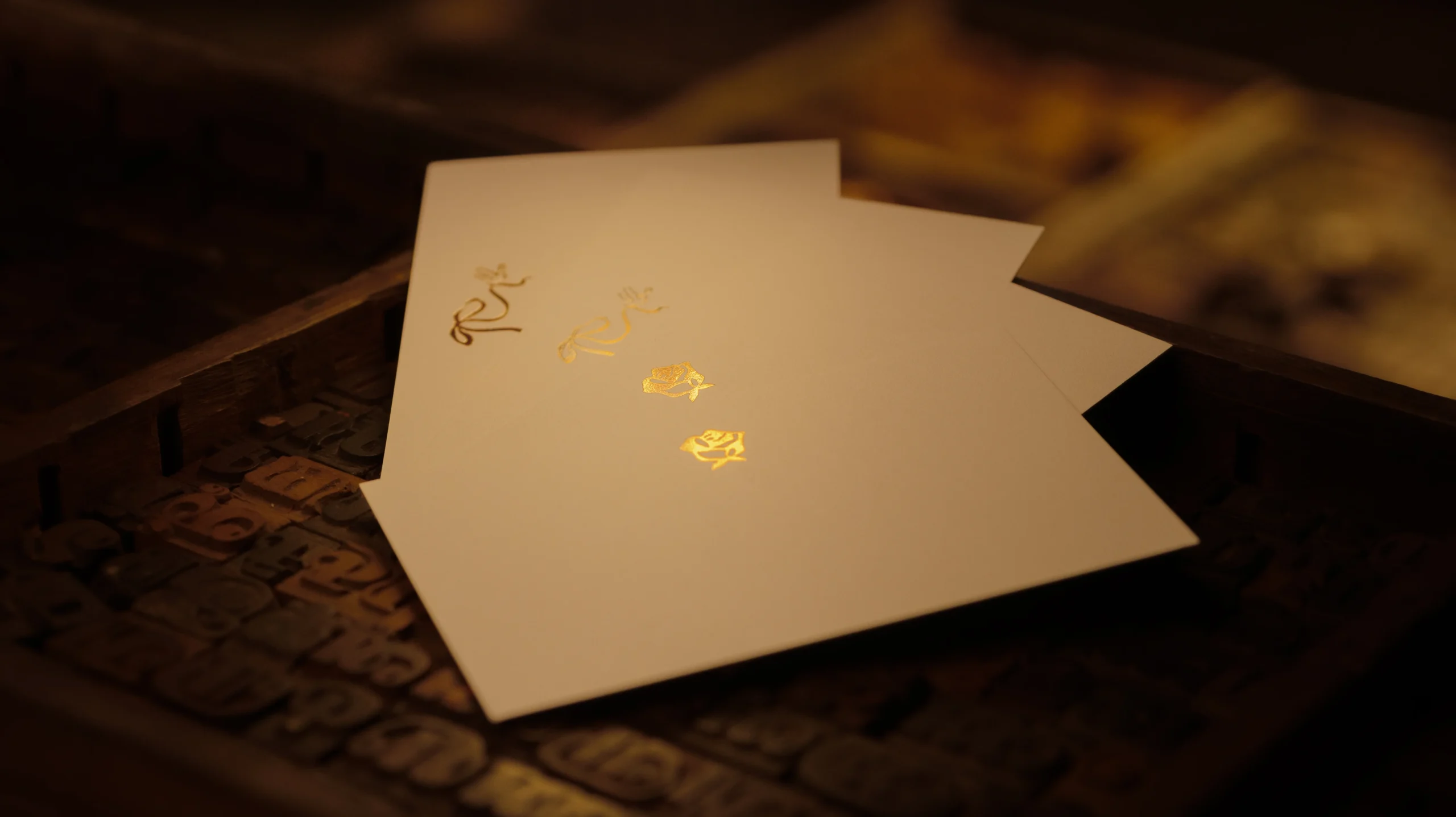 A custom-made metal plate is inked and pressed into thick cotton paper. The result is a deep, tactile impression with elegant shadows and a timeless vintage luxury look